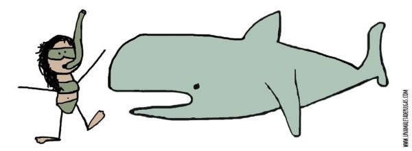Pese a lo pronosticado por mi madre, nunca di ese gran estirón y me estanqué en el 1.64 cm, por lo que mis kilos de más siguieron ahí e incluso aumentaron durante el instituto y la adolescencia. Fue entonces que la historia se complicó un poco. Hicimos el viaje de los pubertos catorce años, fuimos a hacer rafting, fuimos a recoger el traje de neopreno para hacer el rafting y haciendo la cola junto a mi mejor amigo el Lobito Feroz llegamos juntos al señor de los trajes. Fue entonces que el señor de los trajes, a un ritmo de pura producción en cadena, nos dio de la misma caja un traje de neopreno al Lobito Feroz y otro a mi; y así, dentro de un momento de puro pánico mirando a mi amigo y mirándome a mi misma, me arme de un valor infantil inexistente y le pregunté casi en susurro «disculpe, ¿no tienen tallas diferentes, una talla más grande?». y ahí, al otro lado de la barra de puestecito de trajes de neopreno, el señor de los trajes se topó con Caperucita y el Lobito juntos con cara de angustiosa espera, y mirándoles contesto un sencillo «es talla única. Id a cambiaros que empezamos en breve».